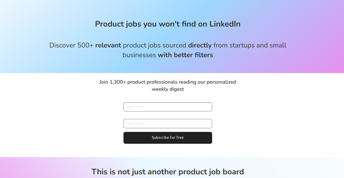 A few weeks ago, I promoted my Product Jobs Newsletter. The concept was simple: I created a landing page to attract new subscribers interested in product job listings.